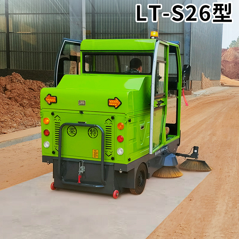 莱特LT-S26型全封闭驾驶式扫地车,清扫宽度2200mm,满电工作时间为4-6小时,工作效率:12000-16000㎡/h,采用的是大品牌铅酸免维护电池。应用场景为:厂区、车间、公园、街道、物业小区、地下车库、停车场、充电站、加油站、码头、学校、机场等区域。